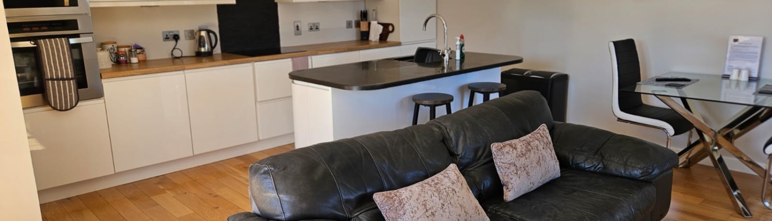 The large modern kitchen / living area has a fully equipped kitchen including integrated dishwasher, washing machine, oven and microwave along with a hob. Perfect when you fancy a home cooked meal, or a take away and a cosy night in, in front of the log fire. [more information…]